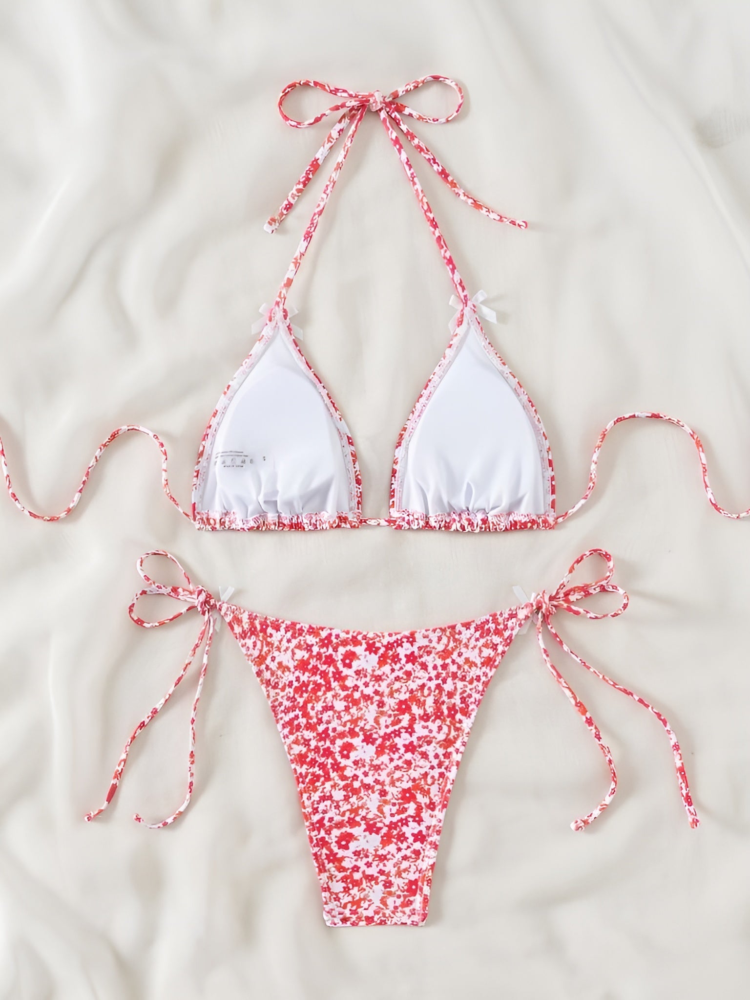 Turn up the heat with the Ceres Bikini Set in Floral Red. Designed with a bold red floral print, this sexy lace-up bikini is made for those who love to stand out. The triangle cup design enhances your silhouette, while the adjustable fit ensures maximum comfort. Perfect for your next tropical getaway!