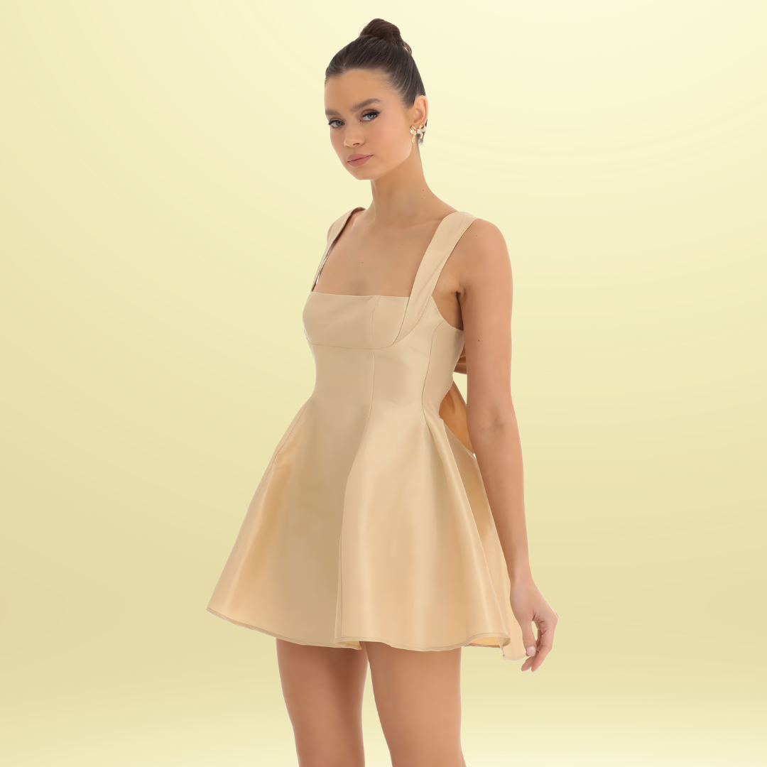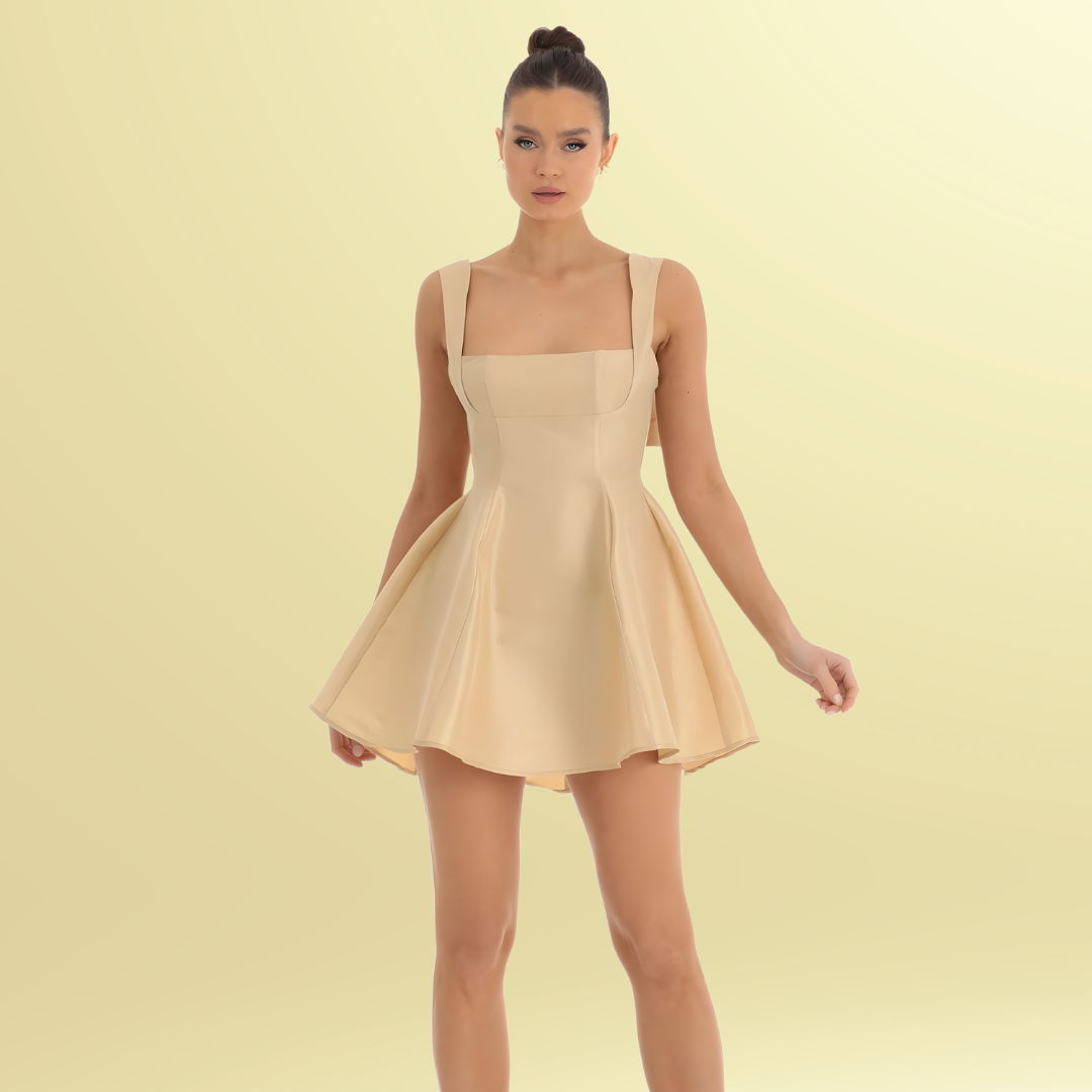 Elevate your style with the Elise Dress in Apricot. Made from soft polyester, this plain-colored dress features a stylish lantern skirt that creates a feminine silhouette. The warm apricot tone adds a subtle pop of color, perfect for day or evening wear.